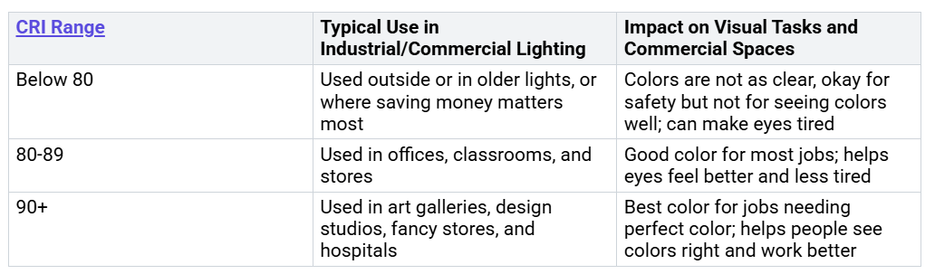Ang mga LED sa mahaba, manipis na mga fixturesMayroong tatlong pangunahing uri ng linear lighting. Ang mga ito ay recessed, naka-mount sa ibabaw, at nasuspinde. Ang bawat uri ay pinakamahusay na gumagana sa iba't ibang mga puwang at estilo.CRI sa pagitan ng 80 at 90. Ang isang CRI ng 80 o higit pa ay mabuti para sa karamihan ng mga trabaho. Ang isang CRI na 90 o higit pa ay pinakamahusay para sa mga lugar kung saan dapat eksaktong eksaktong kulay. Ang mas mataas na CRI ay nangangahulugang mas mahusay na kulay, mas ginhawa, at mas ligtas na trabaho. Makakatulong ito sa mga tao na mas mahusay ang kanilang mga trabaho.